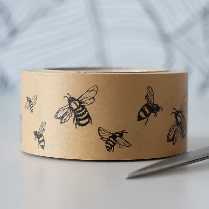 Helen says: “we reuse all of our packaging. as we move towards becoming a waste-free business, we will continue to find alternatives which are recyclable in our everyday life. we wanted to share this great new kraft packing tape with you, now available in two handy sizes. it celebrates our local bee population, while providing an eco friendly alternative.”